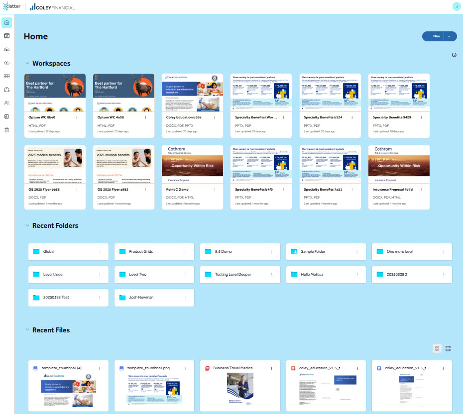 Clatter doubles as a digital asset management system, giving teams one place to find, update, and use content within a centralized collateral management platform.